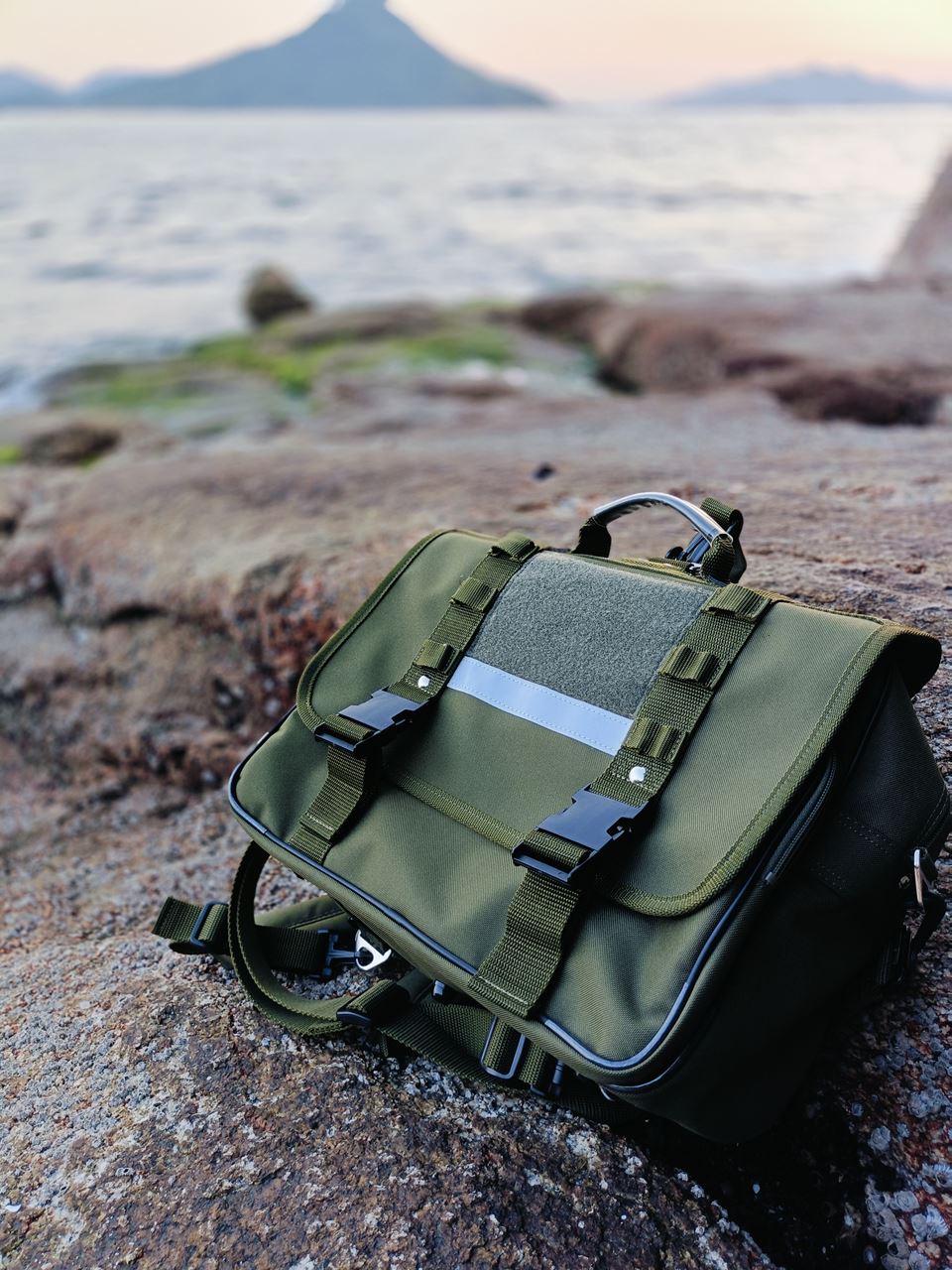 手持ち・リュック・ショルダーの3通りで使える構造はそのままに、ミリタリーで用いられるベルクロとウェイビングシステムを追加。ギア感あふれる外観に仕上がり、拡張性・カスタマイズ性も抜群です。