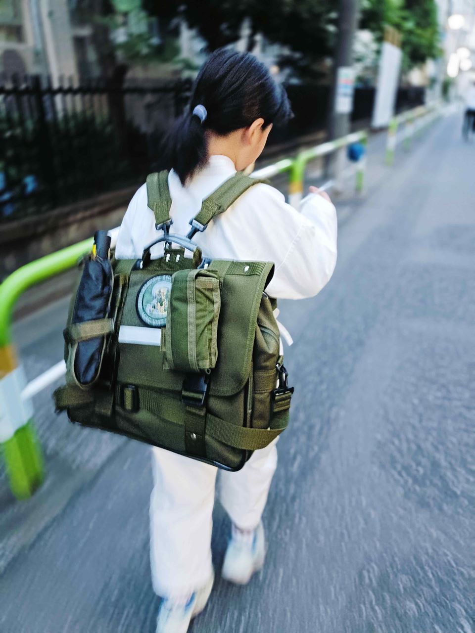 また、従来のスクールバッグには使われなかったオリーブカラーを採用し、自然の風景にもよくなじむデザインに。(コストもかかってますよぉ!)