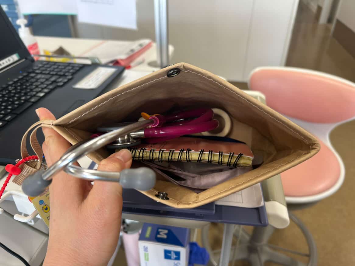 ・看護師のお道具入れ⋯聴診器(ステート)・テープ・あんちょこ