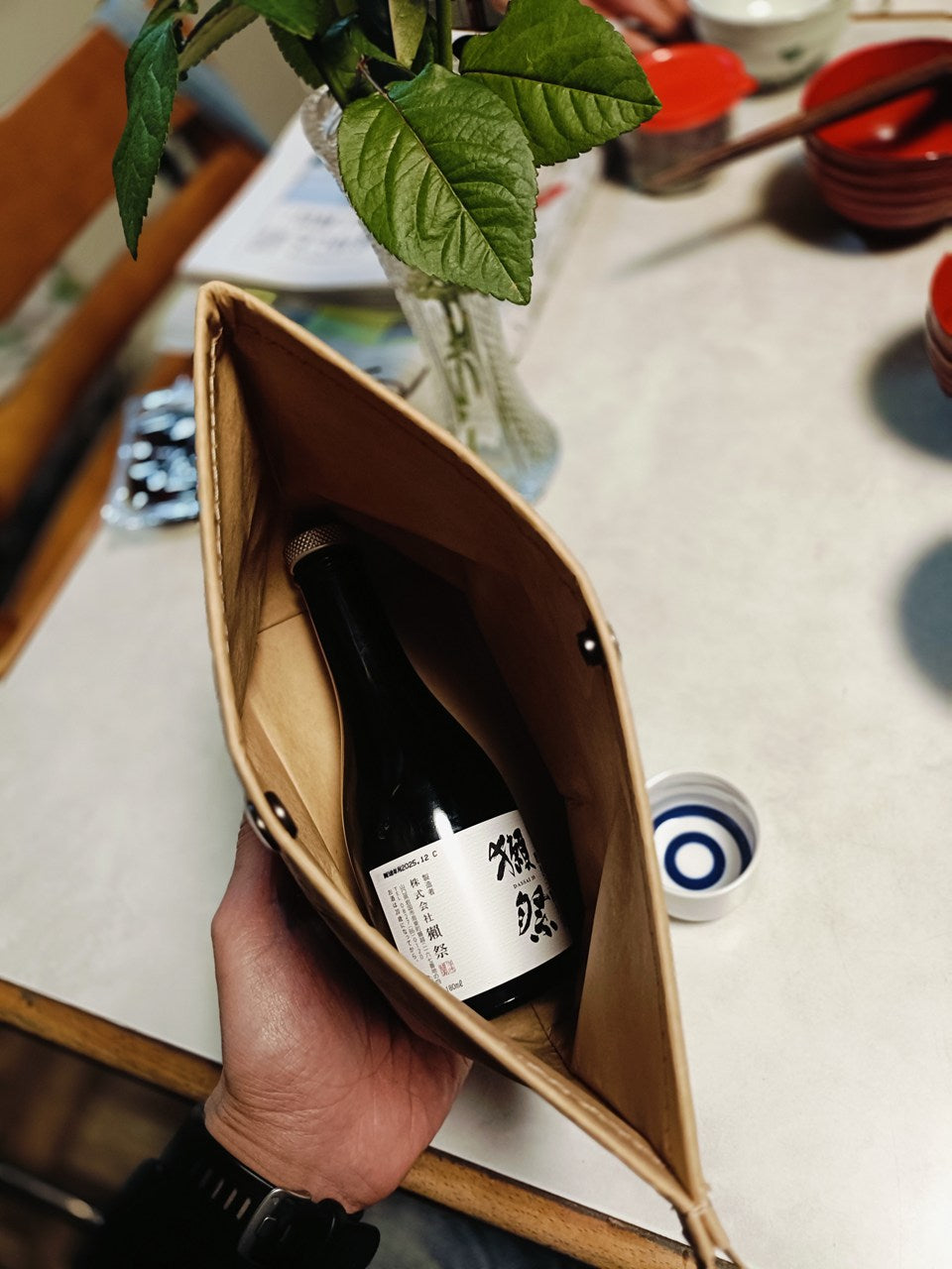 ・日本酒&おちょこ入れ⋯獺祭180ml瓶が横向きに入ります
